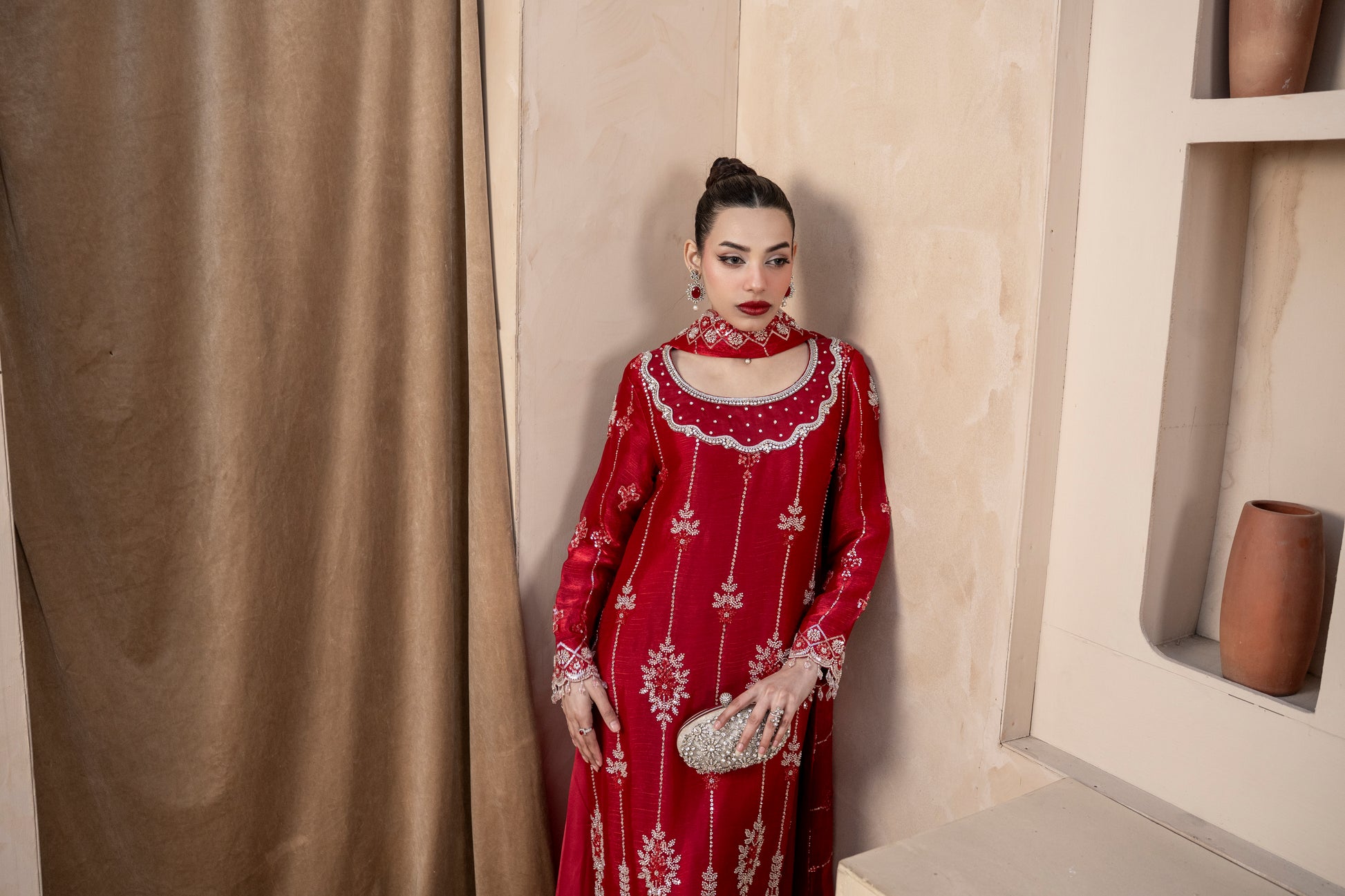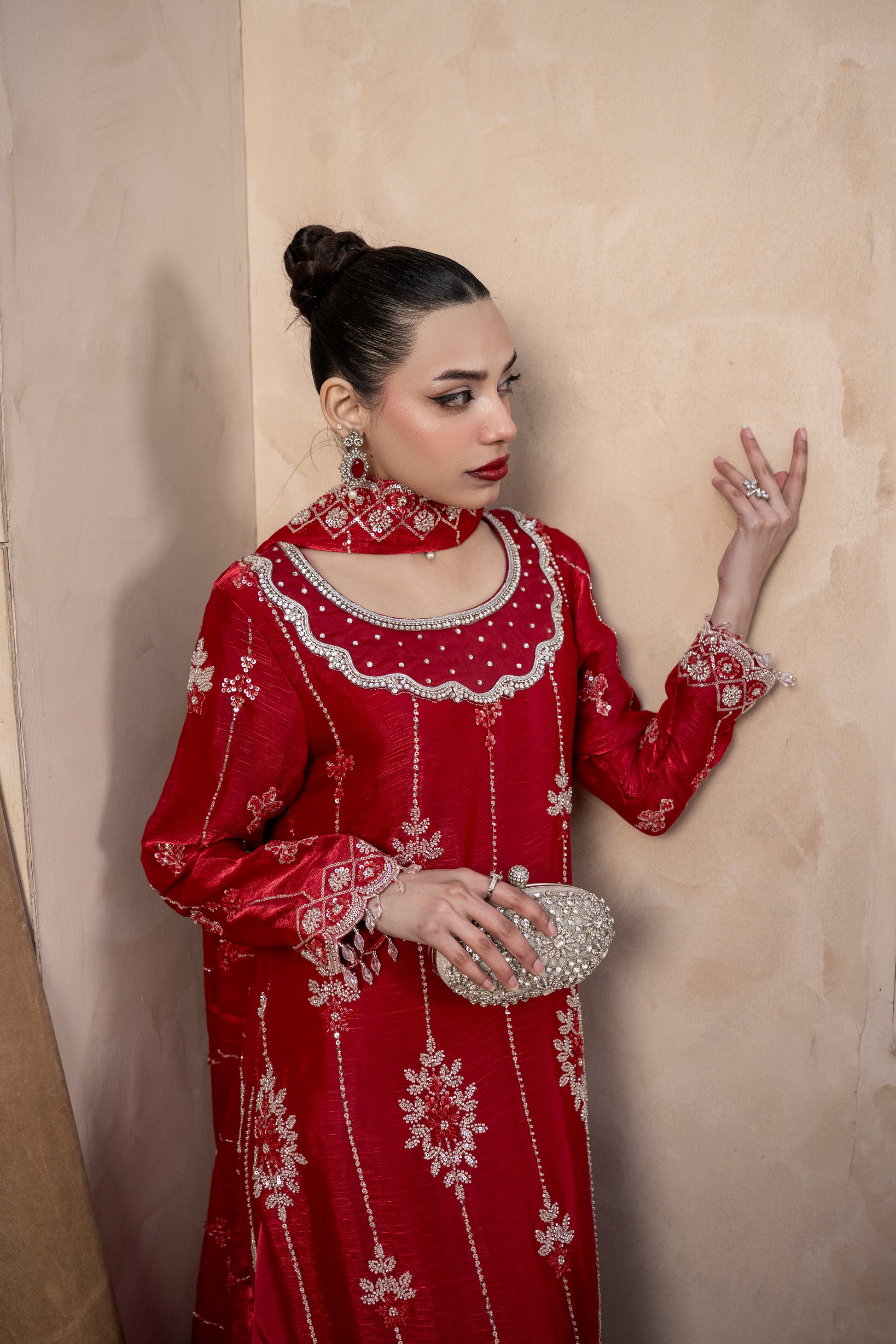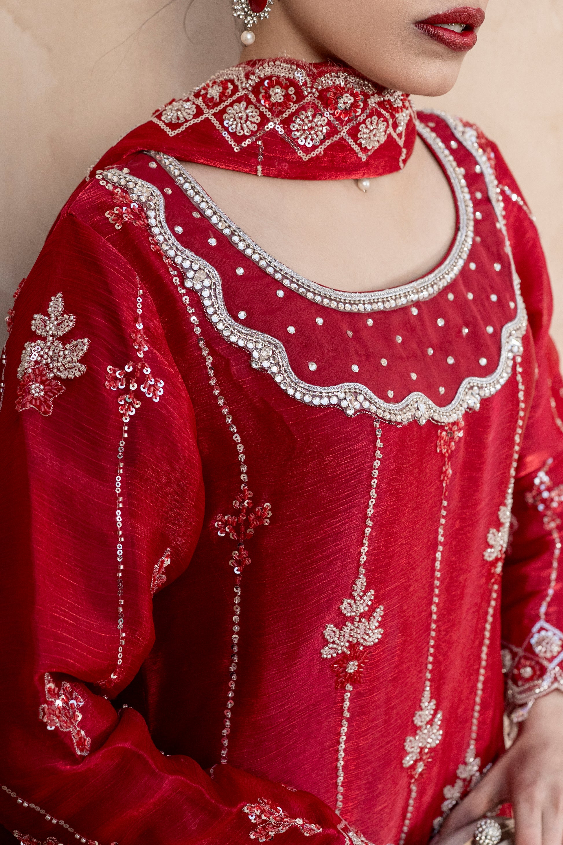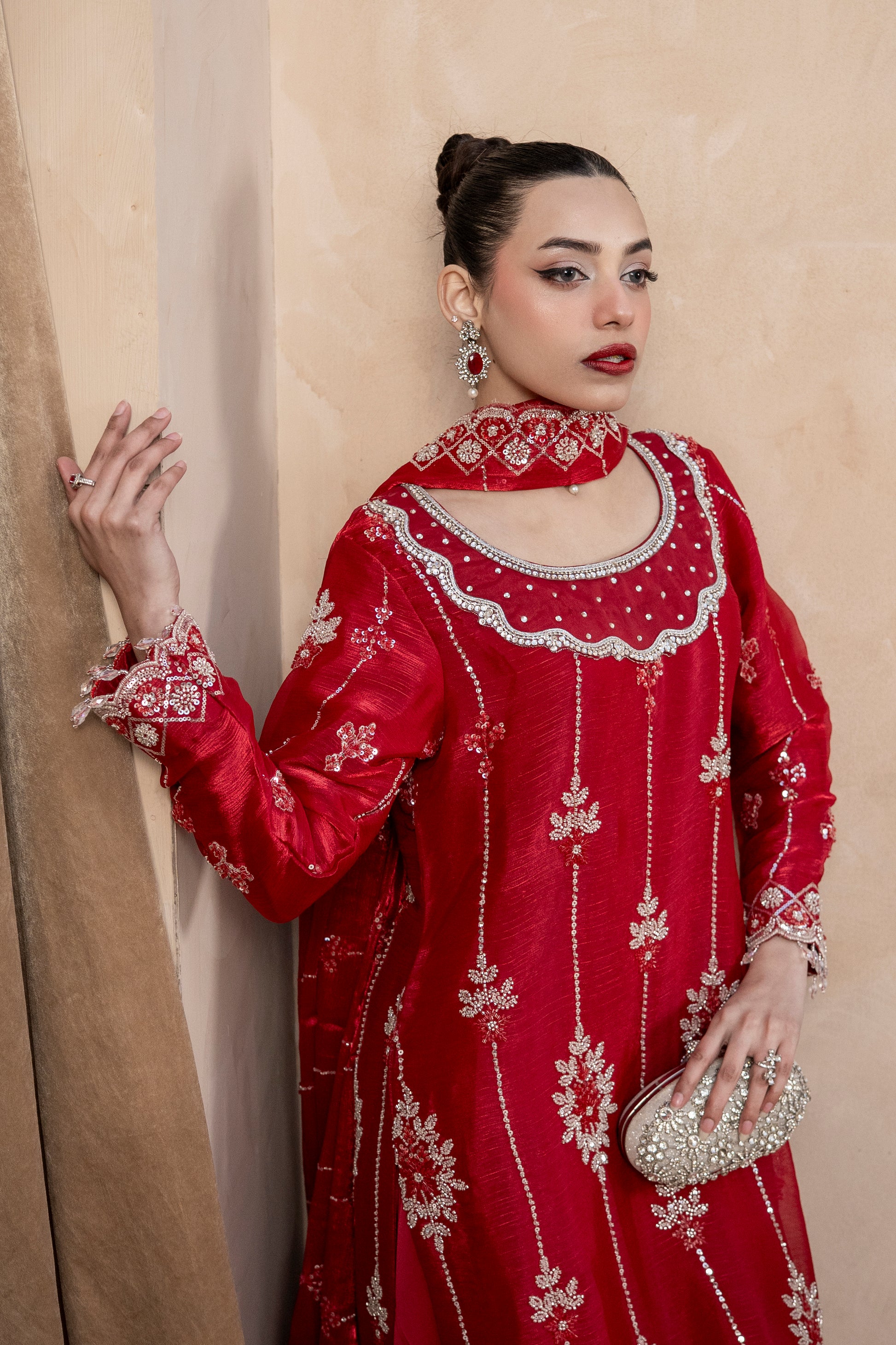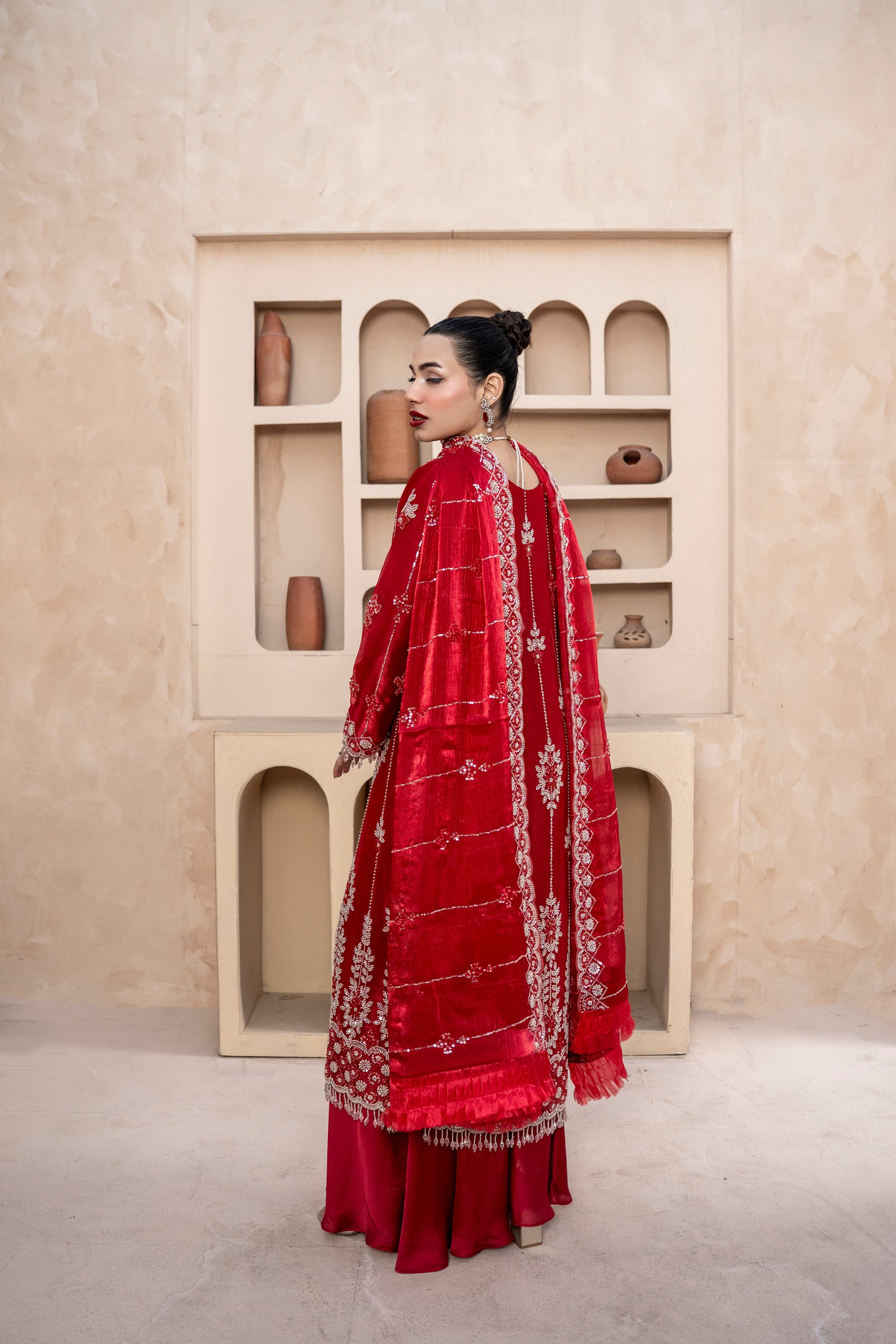 Experience the perfect blend of tradition and modern glamour. This 3-piece ready-to-wear ensemble is designed for weddings, Eid, and festive celebrations.
